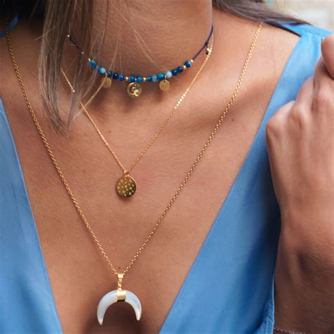 Bali, indiana com elos, aros, escapulários, rosários e colares com pedras. The necklace is simultaneously simple and extravagant, a real eye catcher for an elegant and classic look. Pode escolher entre três banhos diferentes: