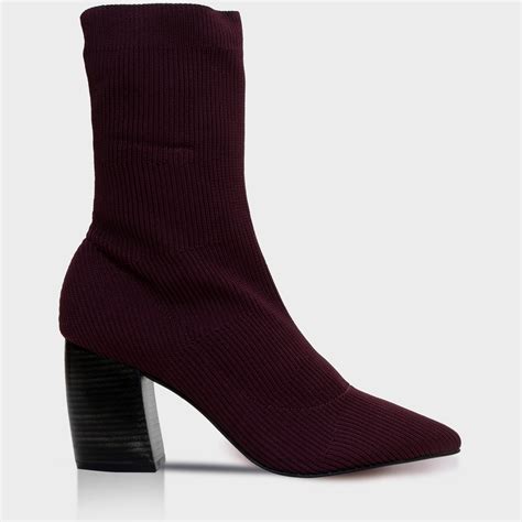 Bota Meia com Salto Bloco em Tecido Knit Raisin carrano.com.br
